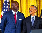 Michael Jordan receiving the Presidential Medal of Freedom from U.S. President Barack Obama at the White House in Washington, D.C. on November 23, 2016.Obama said "Michael Jordan is the Michael Jordan of greatness. He is the definition of somebody so good at what they do that everybody recognizes him. Photo from Pete Souza at the White House